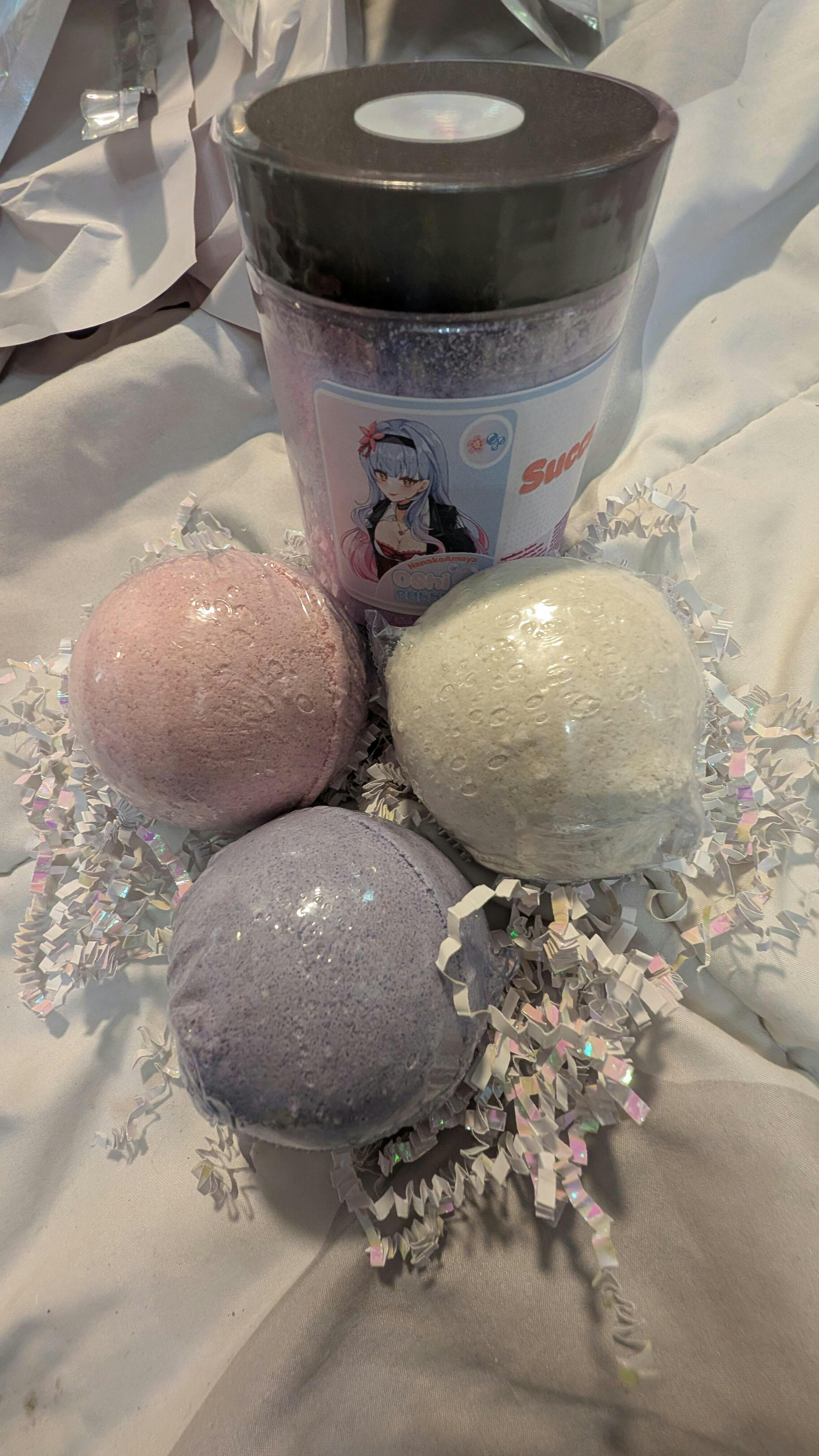 Get ready for an explosive aroma of strawberry and champagne with Hanako's succubomb! Using fresh and warm scents that'll making using this bath bomb feel like you're bathing like a succubus. <3
